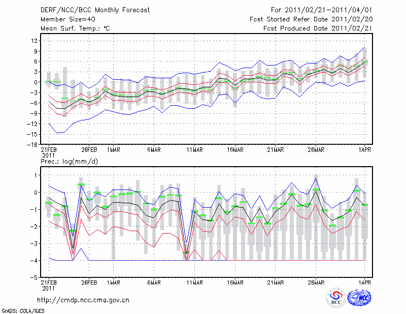 呼和浩特 (LAT:40.82 LON:111.68) 2011-02-21        预测