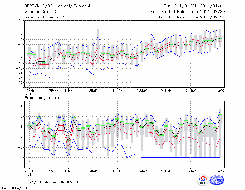 锡林浩特 (LAT:43.95 LON:116.07) 2011-02-21        预测