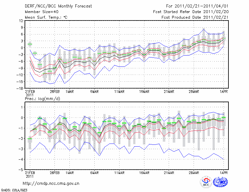 延 吉 (LAT:42.88 LON:129.47) 2011-02-21        预测