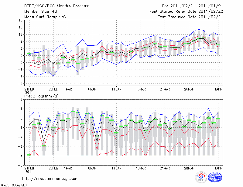 潍 坊 (LAT:36.70 LON:119.08) 2011-02-21        预测