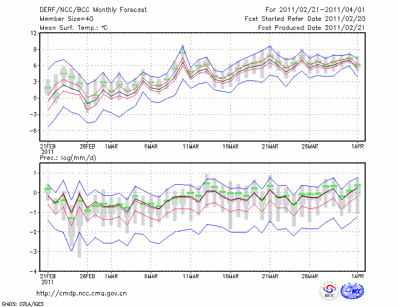 甘 孜 (LAT:31.62 LON:100.00) 2011-02-21        预测
