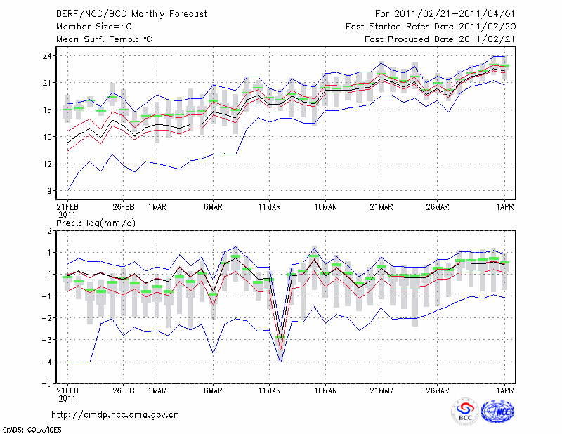 蒙 自 (LAT:23.38 LON:103.38) 2011-02-21        预测