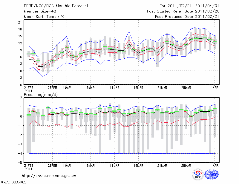 南 京 (LAT:32.00 LON:118.80) 2011-02-21        预测