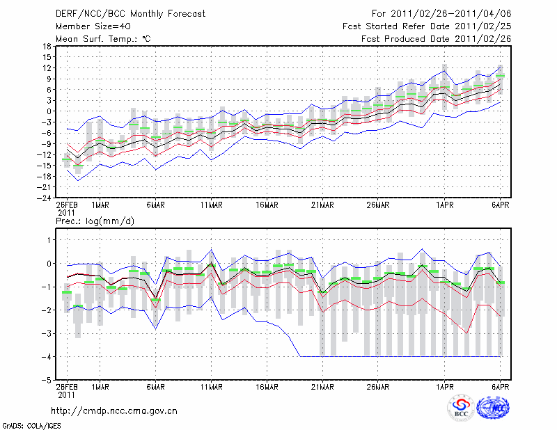 哈 尔 滨 (LAT:45.75 LON:126.77) 2011-02-26        预测