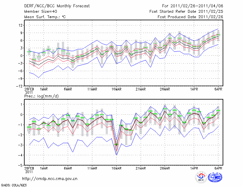 西 宁 (LAT:36.62 LON:101.77) 2011-02-26        预测