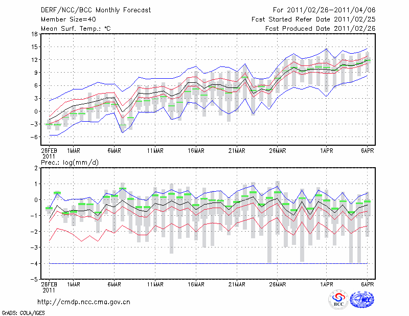 延 安 (LAT:36.60 LON:109.50) 2011-02-26        预测