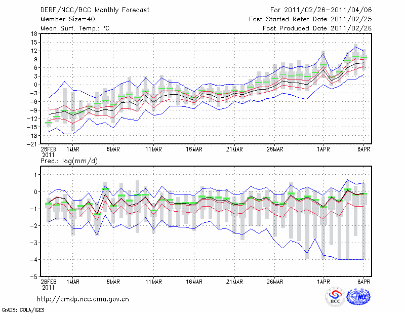 牡 丹 江 (LAT:44.57 LON:129.60) 2011-02-26        预测