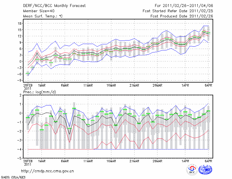 潍 坊 (LAT:36.70 LON:119.08) 2011-02-26        预测