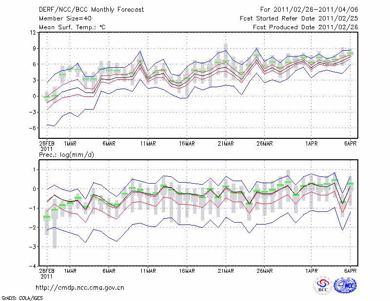 甘 孜 (LAT:31.62 LON:100.00) 2011-02-26        预测