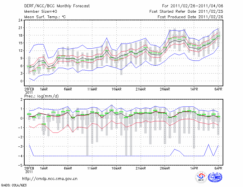 合 肥 (LAT:31.87 LON:117.23) 2011-02-26        预测