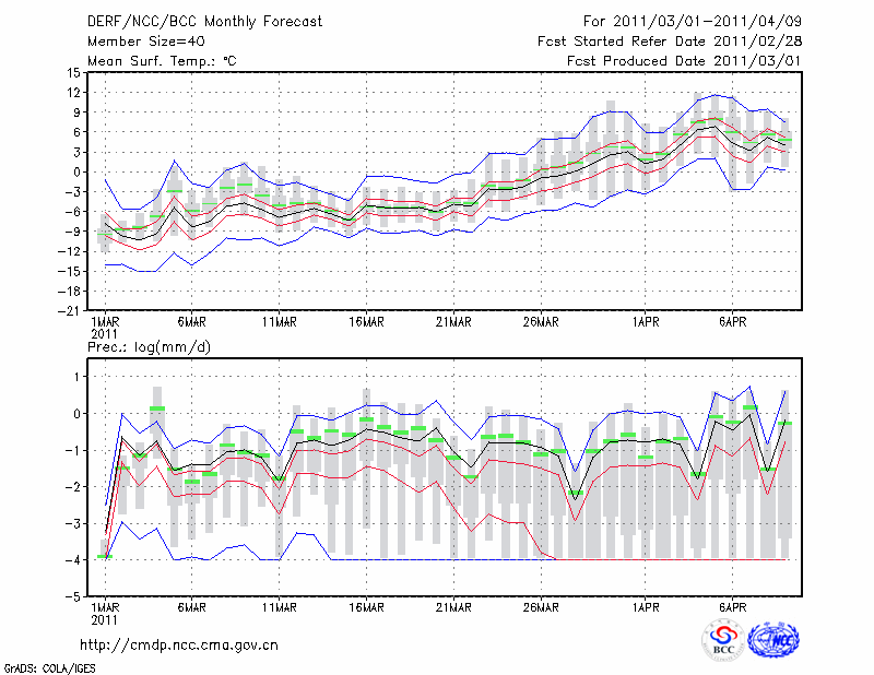 齐齐哈尔 (LAT:47.38 LON:123.92) 2011-03-01        预测
