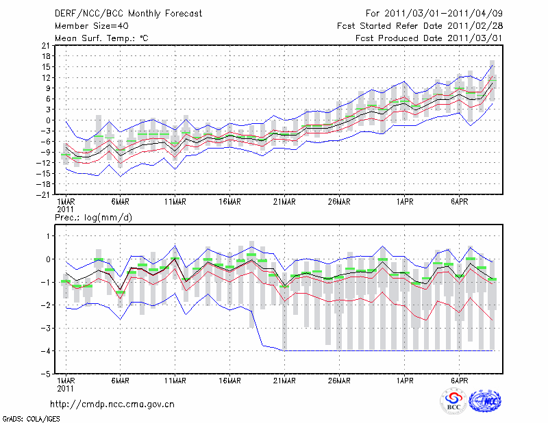哈 尔 滨 (LAT:45.75 LON:126.77) 2011-03-01        预测