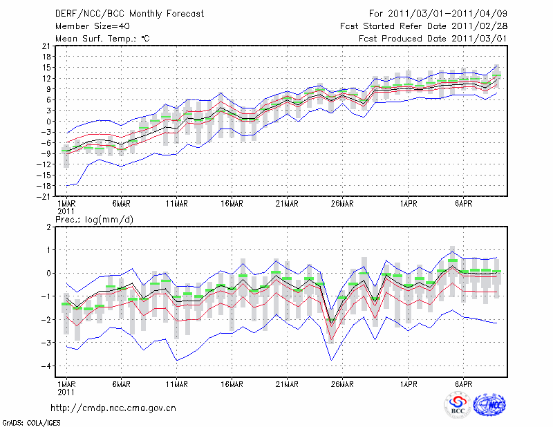 乌 苏 (LAT:44.43 LON:84.66) 2011-03-01        预测
