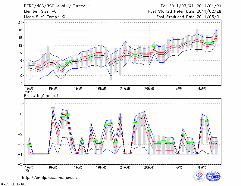 若 羌 (LAT:39.03 LON:88.17) 2011-03-01        预测