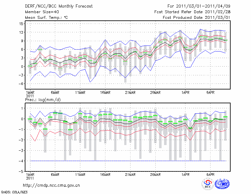 西 峰 镇 (LAT:35.73 LON:107.63) 2011-03-01        预测