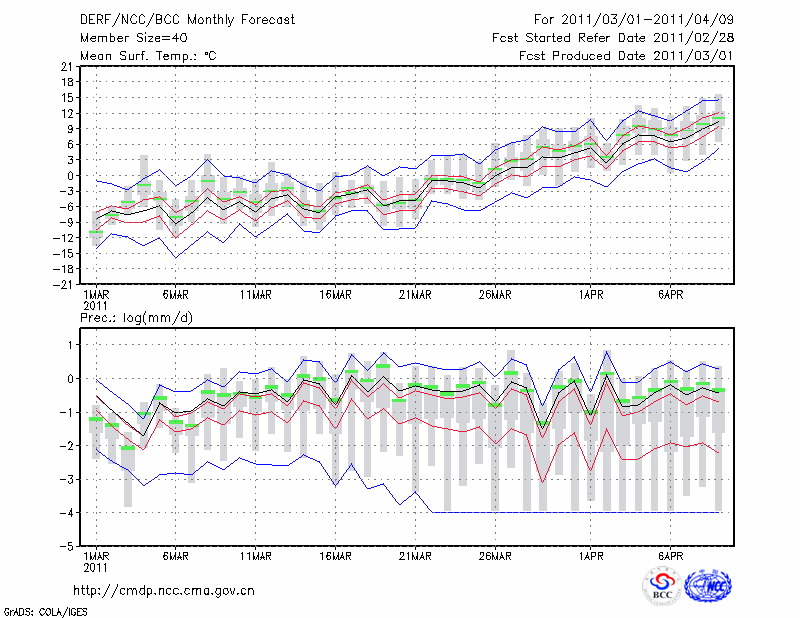 长 春 (LAT:43.90 LON:125.22) 2011-03-01        预测
