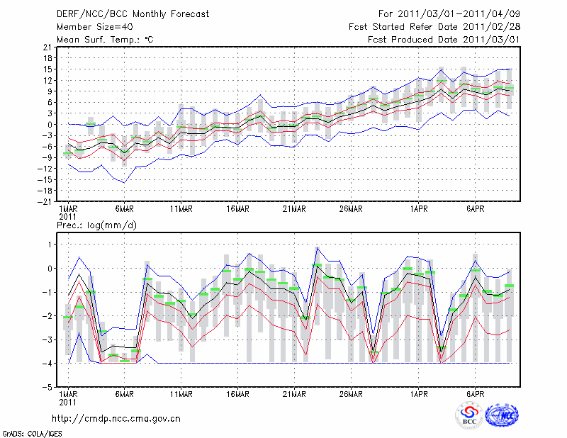 赤 峰 (LAT:42.27 LON:118.97) 2011-03-01        预测