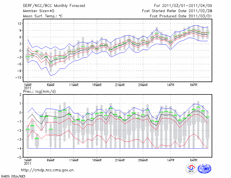 丹 东 (LAT:40.05 LON:124.33) 2011-03-01        预测