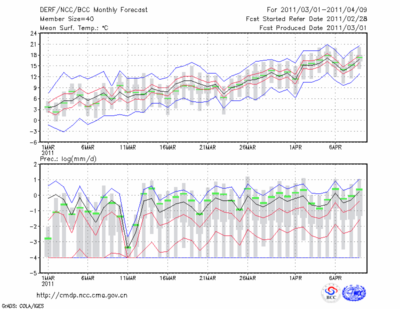 济 南 (LAT:36.68 LON:116.98) 2011-03-01        预测