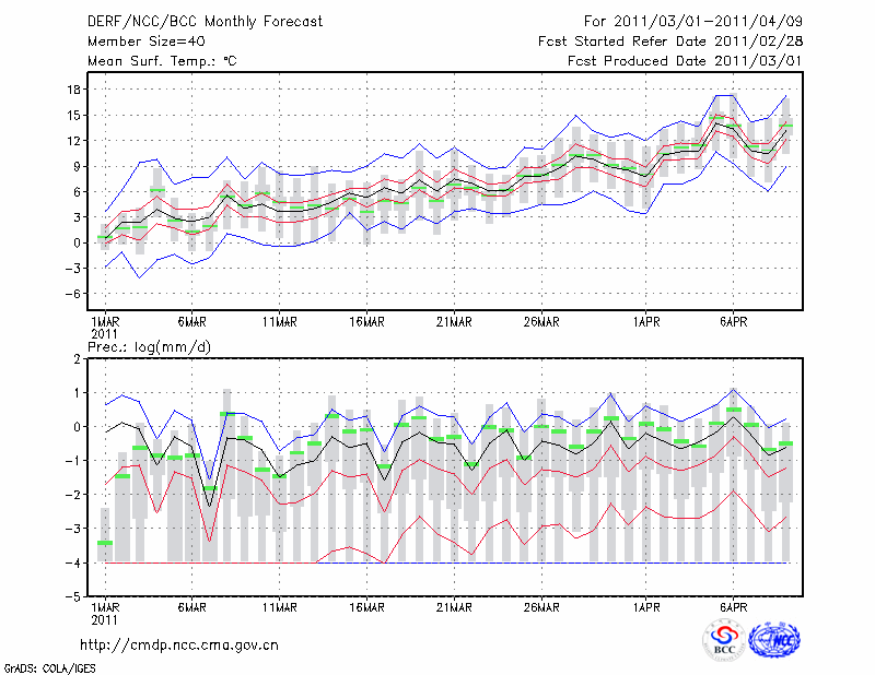 潍 坊 (LAT:36.70 LON:119.08) 2011-03-01        预测