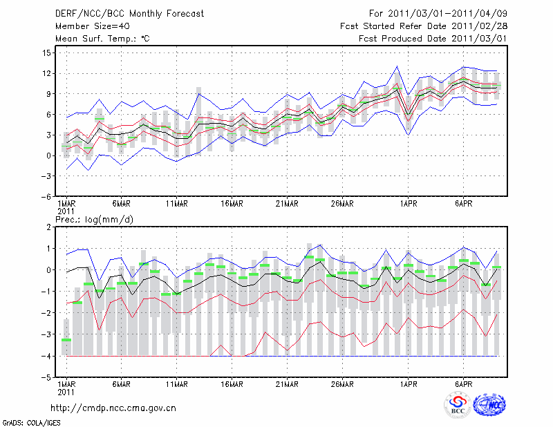 青 岛 (LAT:36.07 LON:120.33) 2011-03-01        预测