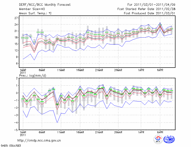 西 昌 (LAT:27.90 LON:102.27) 2011-03-01        预测