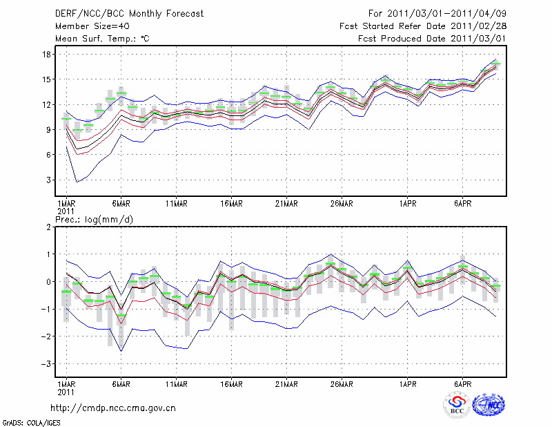 丽 江 (LAT:26.83 LON:100.47) 2011-03-01        预测