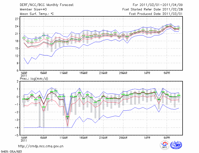 蒙 自 (LAT:23.38 LON:103.38) 2011-03-01        预测