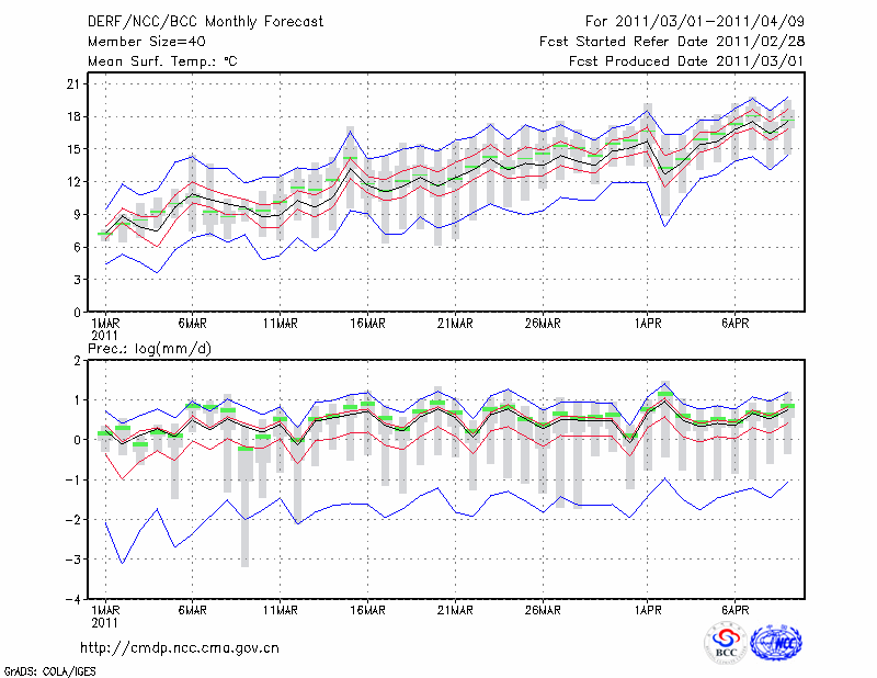 恩 施 (LAT:30.28 LON:109.47) 2011-03-01        预测