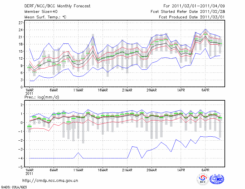 岳 阳 (LAT:29.38 LON:113.08) 2011-03-01        预测