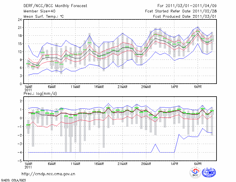 安 庆 (LAT:30.53 LON:117.05) 2011-03-01        预测