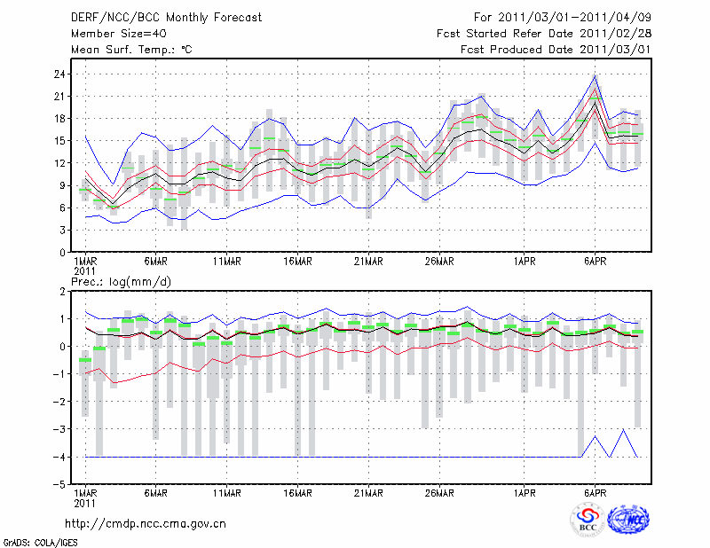 杭 州 (LAT:30.23 LON:120.17) 2011-03-01        预测