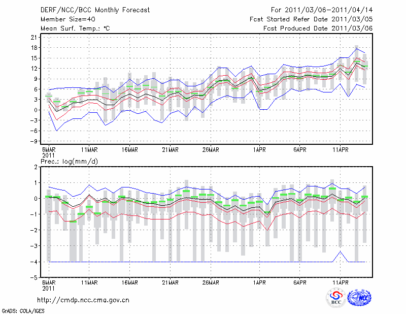 西 峰 镇 (LAT:35.73 LON:107.63) 2011-03-06        预测