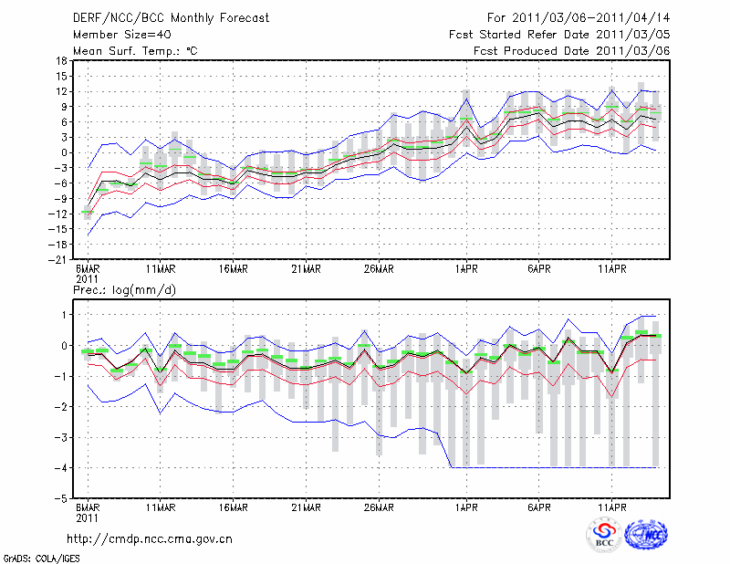 牡 丹 江 (LAT:44.57 LON:129.60) 2011-03-06        预测