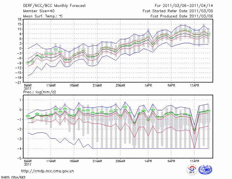 长 春 (LAT:43.90 LON:125.22) 2011-03-06        预测