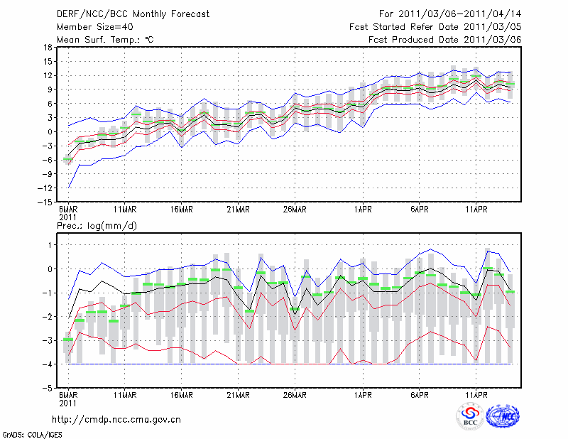 营 口 (LAT:40.67 LON:122.20) 2011-03-06        预测