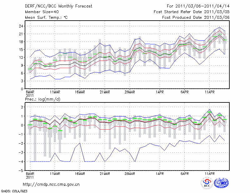 钟 祥 (LAT:31.17 LON:112.57) 2011-03-06        预测