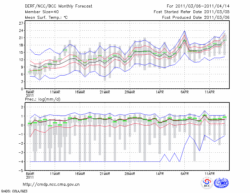杭 州 (LAT:30.23 LON:120.17) 2011-03-06        预测