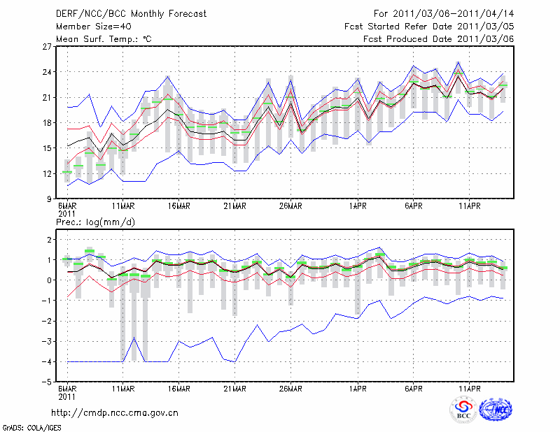 福 州 (LAT:26.08 LON:119.28) 2011-03-06        预测