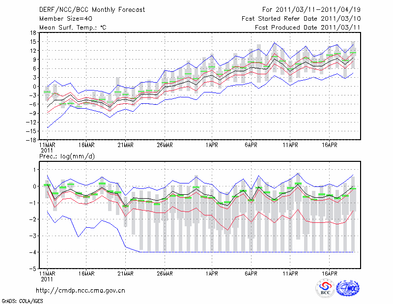 哈 尔 滨 (LAT:45.75 LON:126.77) 2011-03-11        预测