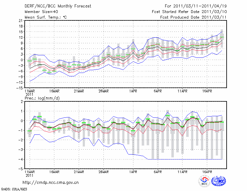牡 丹 江 (LAT:44.57 LON:129.60) 2011-03-11        预测