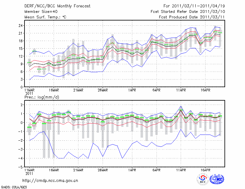 钟 祥 (LAT:31.17 LON:112.57) 2011-03-11        预测