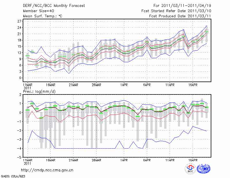 南 京 (LAT:32.00 LON:118.80) 2011-03-11        预测