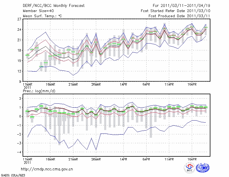 福 州 (LAT:26.08 LON:119.28) 2011-03-11        预测