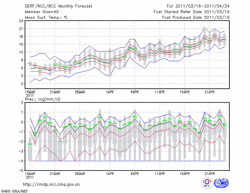 潍 坊 (LAT:36.70 LON:119.08) 2011-03-16        预测