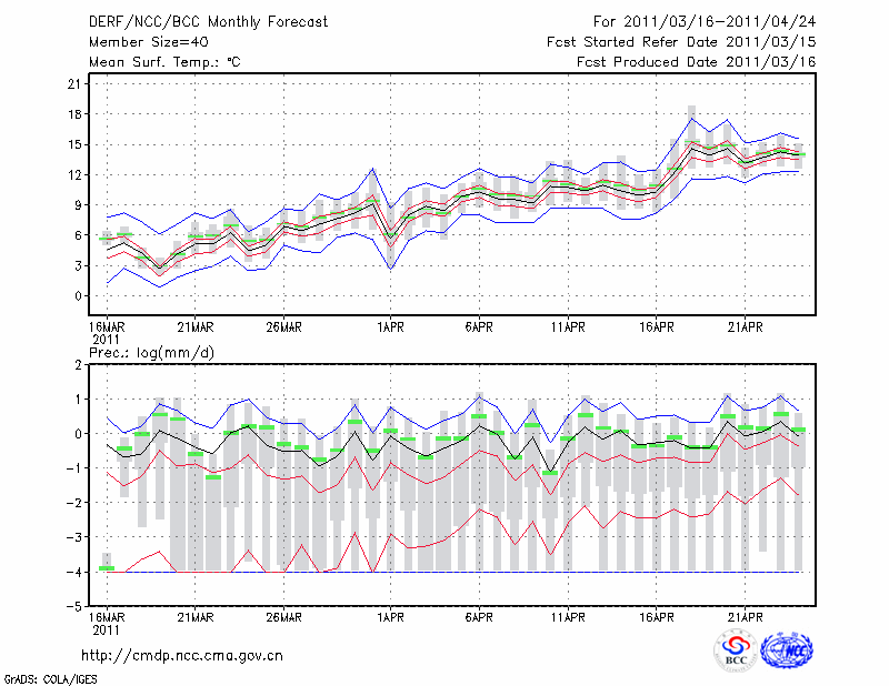 青 岛 (LAT:36.07 LON:120.33) 2011-03-16        预测