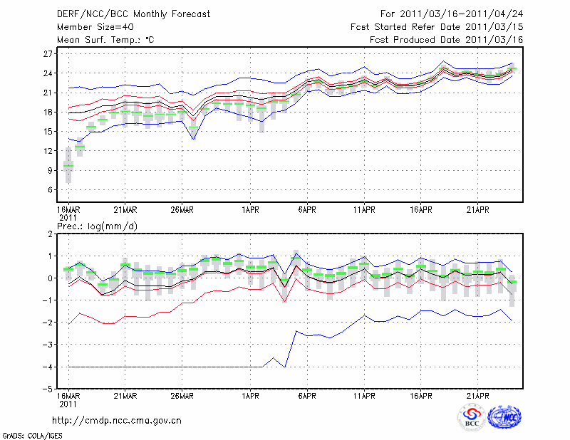 蒙 自 (LAT:23.38 LON:103.38) 2011-03-16        预测