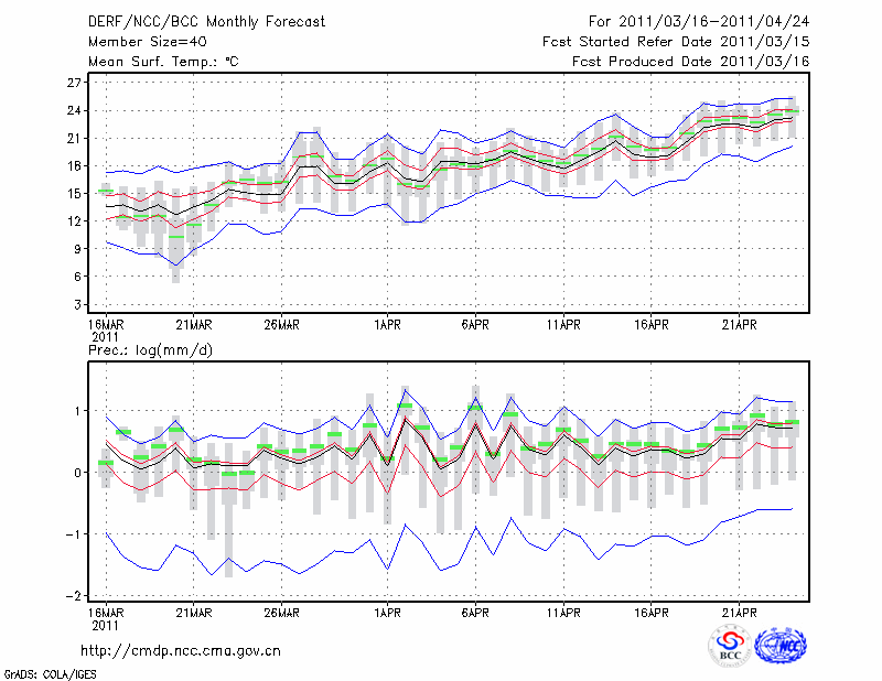 南 充 (LAT:30.80 LON:106.08) 2011-03-16        预测