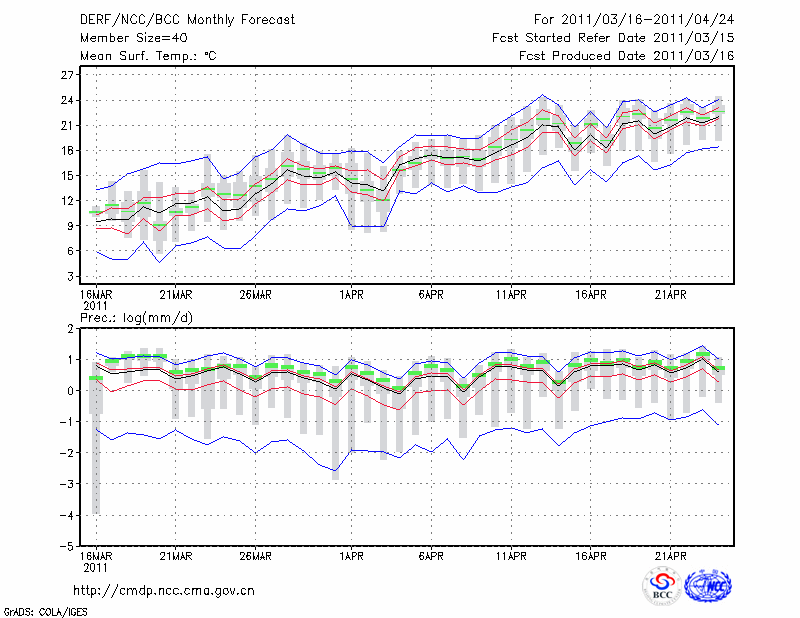 宜 昌 (LAT:30.70 LON:111.30) 2011-03-16        预测