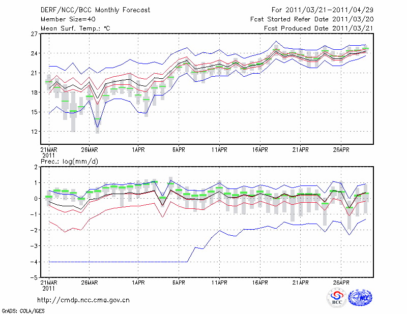 蒙 自 (LAT:23.38 LON:103.38) 2011-03-21        预测